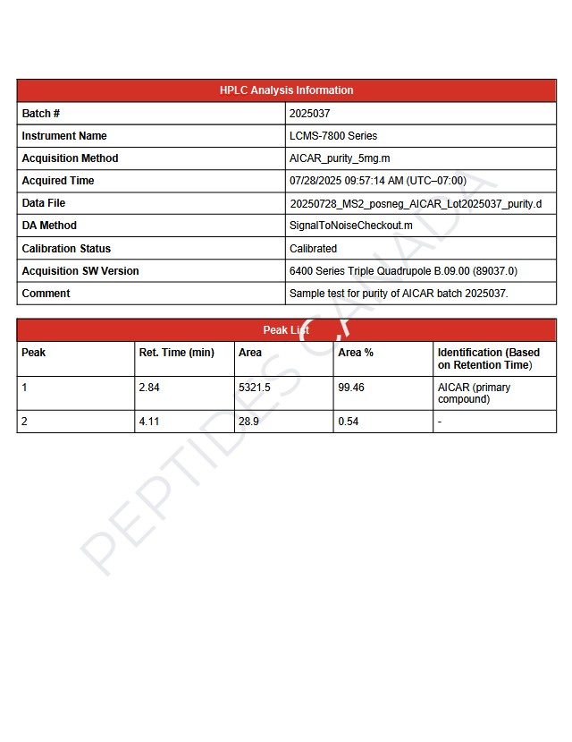 AICAR is available for research and laboratory purposes only. Not for human consumption.