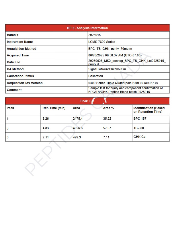BPC/TB/GHK peptide blend is available for research and laboratory purposes only. Not for human consumption.
