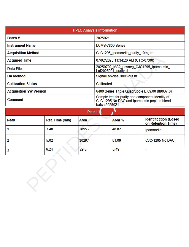 CJC-1295 & Ipamorelin peptide blend is available for research and laboratory purposes only. Please review and adhere to our Terms and Conditions before ordering