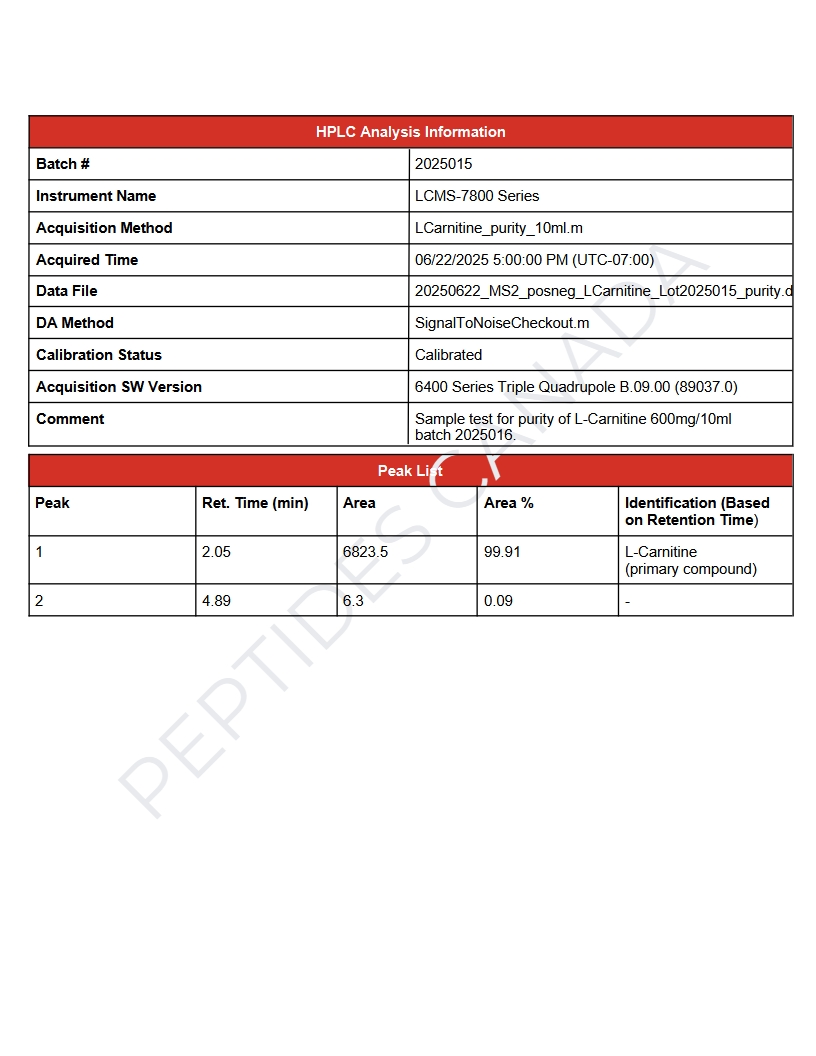 L-Carnitine solution is available for research and laboratory purposes only. Not for human consumption.