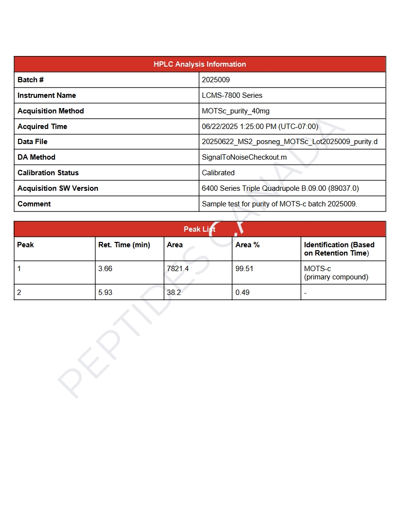 MOTS-c peptide is available for research and laboratory purposes only. Not for human consumption or therapeutic use.