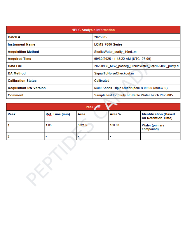 Sterile Water research solvent is intended strictly for scientific study and laboratory experimentation by qualified personnel. Not for human or veterinary administration.