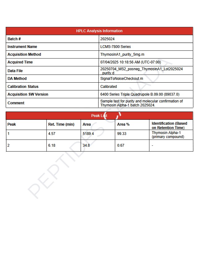 Thymosin Alpha-1 peptide is available for research and laboratory purposes only. Please review and adhere to our Terms and Conditions before ordering.